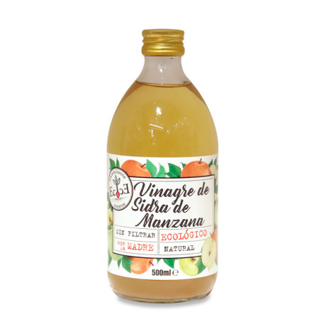 Vinagre de sidra de manzana ecológico sin filtrar y con madre, elaborado de forma natural para conservar todas sus propiedades. Ideal para ensaladas, aliños y cocina saludable.