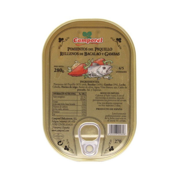 Lata de pimientos del piquillo rellenos de bacalao.