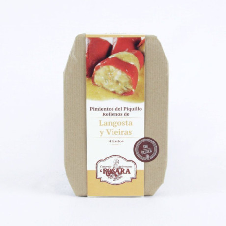 Lata de 4 pimientos rellenos de bogavante y vieiras.