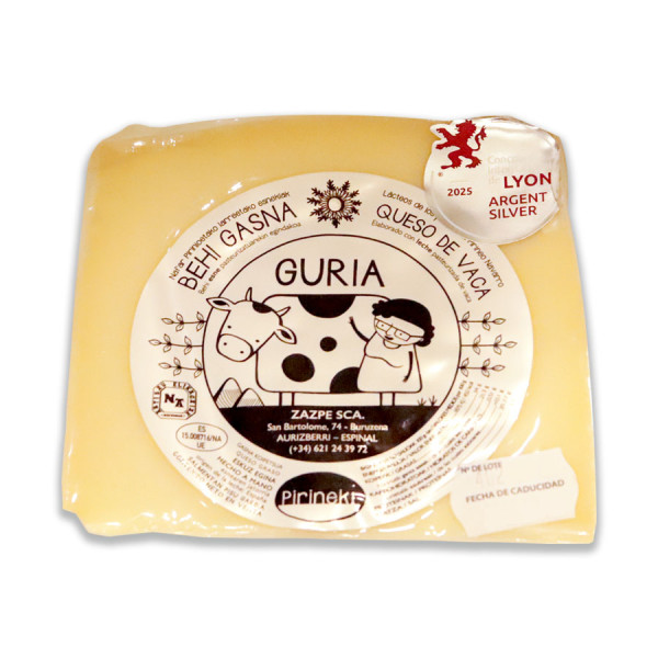 El queso de vaca Guria es un queso artesano elaborado en Navarra por la quesería Zazpe SCA, situada en Aurizberri-Espinal, en pleno Pirineo navarro.