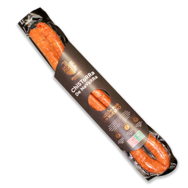 La chistorra de Navarra de Carnicería Iriguíbel es uno de los embutidos más representativos de la gastronomía navarra. Elaborada siguiendo recetas tradicionales y con materias primas de gran calidad, destaca por su sabor intenso, su textura jugosa y su aroma característico.